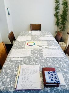 「色の心理効果」7つを復習した後、その応用をお伝えしました。皆さんファッションにつながることに関心が高く、色や柄の見え方、見せ方を熱心に聞いてくださいました。その話がもっと派生して、どこで買い物をしてるか、等情報交換の場にもなりました*\(^o^)/*