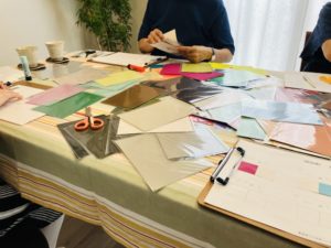 同じ色でもイメージするものが違ったり、イメージしたものが同じでも選ぶ色が違ったり。特に抹茶をイメージした人は多く、それぞれが違っていておもしろかったです! 「こんな色もいいね」「あの色は苦手やわー」など会話も盛り上がりました。