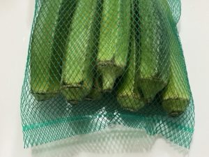 緑のネットに入っているオクラや枝豆は、緑がより濃く見えて、新鮮な印象を与えます。