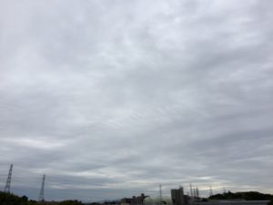 今朝11時前の空。 今日は曇り空。 いきなり昨日から涼しくなりましたね!