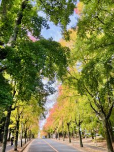 昨日、近所の紅葉の名所「三色街道」を通りました。