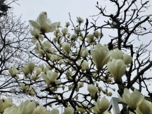 モクレンが美しく咲いています。次は桜、その次は藤。花壇ではチューリップやパンジー、ポピーなどが見られる、美しい花々に囲まれる季節。