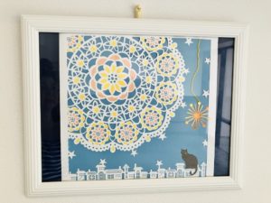 今月のマンションエントランスディスプレイは「花火」の切り紙細工。梅雨が開けた今月下旬から、花火が楽しめますね☆彡