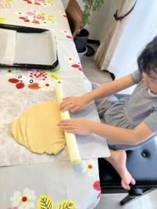 うちに着くなり「すいちゃん(私のこと) とクッキー作りたい」と言ってくれて、今朝はクッキー作り(*^o^*)
