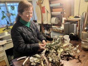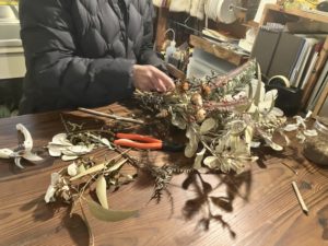 こちらの希望をお伝えしながら素材を選び、組み合わせてもらうと、はい!できあがり!!あっという間に素敵なスワッグができあがりました。