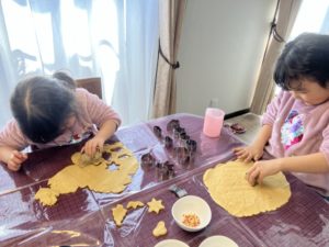 さーちゃんは初めてだったけど、楽しそうに生地作りや型抜きができました。