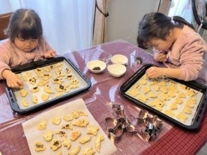 みぃちゃんは2回め。ちょっと余裕で、さーちゃんにアドバイスも。元気がいっぱい詰まったクッキーができました!