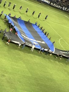 ガンバ戦では、リトル グリー モンスターのパフォーマンスがオープニングとハーフタイムにあり、W効果でものすごい人!!