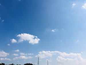 9月最後の今日 13時の空。青空に白い雲がポッカリ浮かんで、いいお天気です。