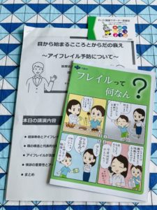 フェイスストレッチングで改善できることがないかと、市の健康サポーター養成講座に参加しました。講座内容は 〜アイフレイル予防について〜