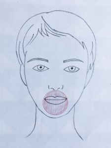 ①唇をすぼめて前に出して、5秒キープ ②すぼめた唇を元に戻したら、歯を巻き込んで思い切り外側に引く ③そのまま5秒キープ ④元の表情に戻す 以上を3回くり返す