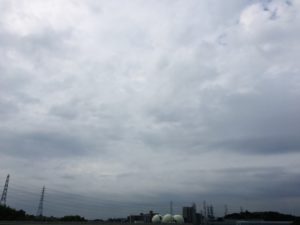 今朝 8時の空。夕方から雨の予報で、厚い雲に覆われています。