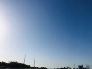 今朝 8時の空は、寝不足の目には眩しすぎる!でも、夜には雨の予報です…。