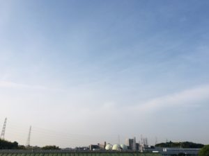 今朝 6時過ぎの空は快晴。いつもより暑かったです。